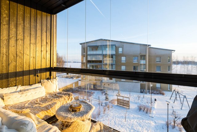 Nyt tarjoutuu upea tilaisuus päästä nauttimaan mahtavasta näkymästä Näsijärvelle niin tästä kolmannen kerroksen asunnosta kuin sen isolta lasitetulta parvekkeelta. Kun parveke vielä suuntaa etelään, on tämä koti puhdasta unelmaa myös auringon ystävälle. Lasitus on kirkas alas asti, mikä tekee parvekkeesta ilmavan ja maksimoi näkymän.