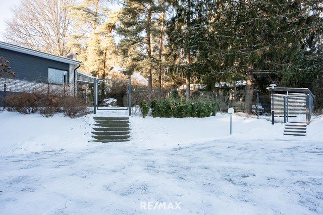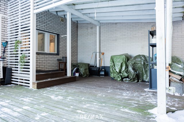 Tässä kodissa kaikki arkiset toiminnot on yhdessä tasossa. Iso lasikatettu terassi toisen sisäänkäynnin yhteydessä mahdollistaa vilvoittelun saunan jälkeen ja tilaan mahtuu niin sohva- kuin ruokailuryhmäkin. Aidatulla piha-alueella tilaa trampoliinille ja lasten leikkimiseen tai koirien ulkoiluun. Kahden auton sähköistetyt autopaikat ja lisätilaa myös useamman auton säilytykseen. Tontti on rajattu kauttaaltaan verkkoaidalla, kuten myös sisäänkäynti suojattu portilla.