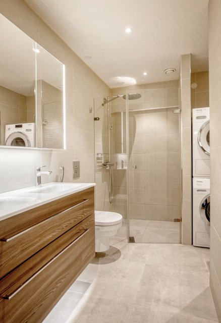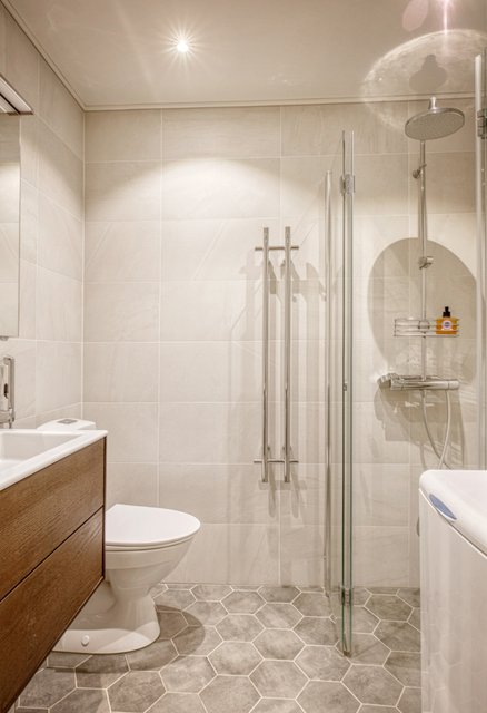 - Asunnosta löytyy kolme erillistä kylpyhuonetta wc tiloineen sekä pyykinpesukone liitäntöineen.