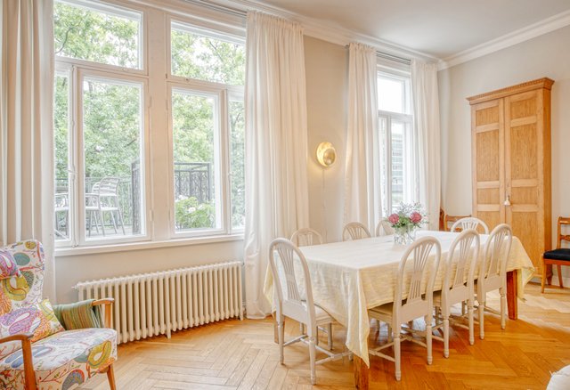 Ainutlaatuinen mahdollisuus asua vehreässä ja arvostetussa ympäristössä jokirannan tuntumassa. Tämä vuonna 1850 rakennettu asunto yhdistää vanhan ajan viehätyksen ja nykyajan vaatimukset. Asunnossa on tilaa suuremmallekin perheelle tai kotitoimistolle. Asunnossa kaikkiaan kuusi huonetta, kaksi keittiötä ja kolme kylpyhuonetta.
