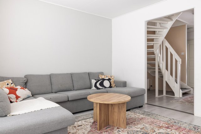 Koti lähellä palveluja, luontoa ja sujuvia liikenneyhteyksiä sekä käytännöllinen pohjaratkaisu helpottavat arkea. Asunnon makuuhuoneet, pesutilat ja sauna ovat sijoitettuna yläkertaan, kun taas olohuone ja keittiö erillinen wc löytyvät alakerrasta. Olohuoneesta on kulku takapihan tilavalle ja suojaisalle terassille.