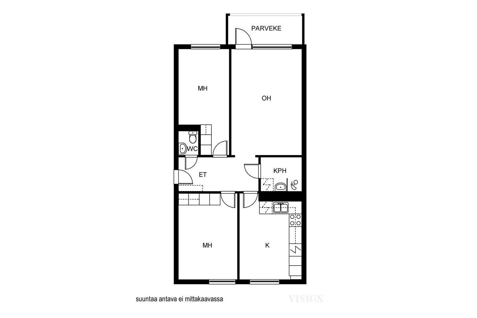 - Keittiö on remontoitu v. 2024. Kaapiston ovet on vaihdettu, mutta runko on alkuperäinen.