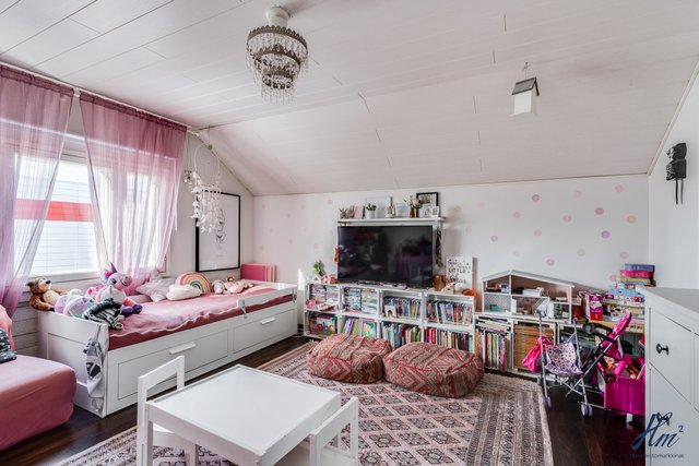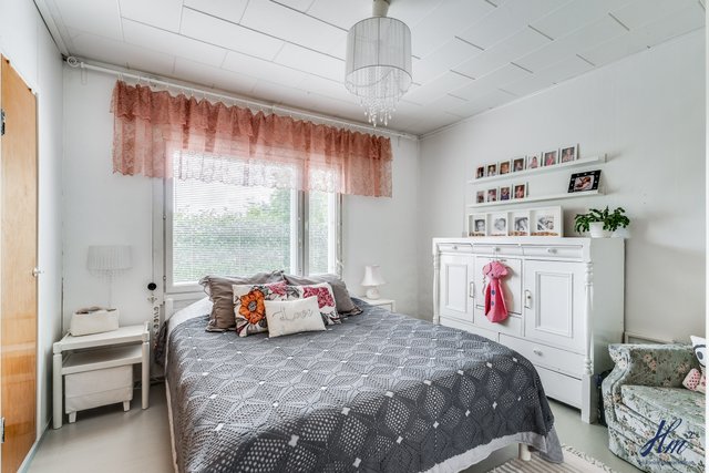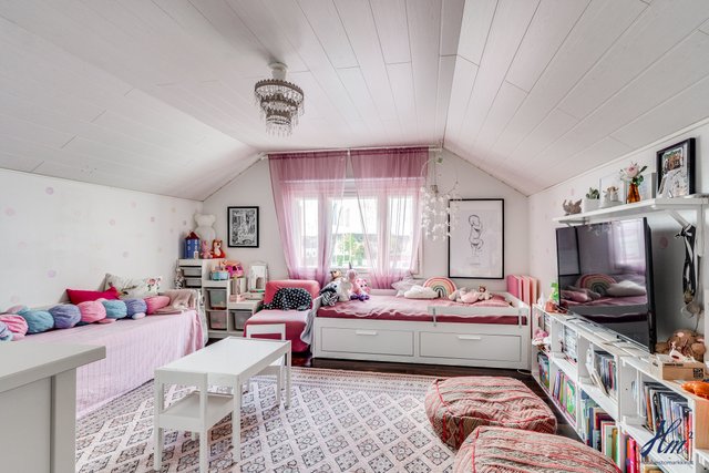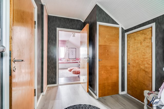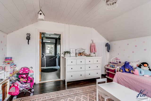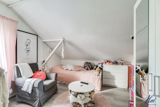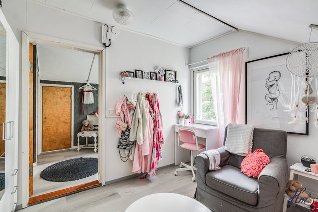 - Päämakuuhuone asuinkerroksessa ja kaksi makuuhuonetta ullakkokerroksessa.
