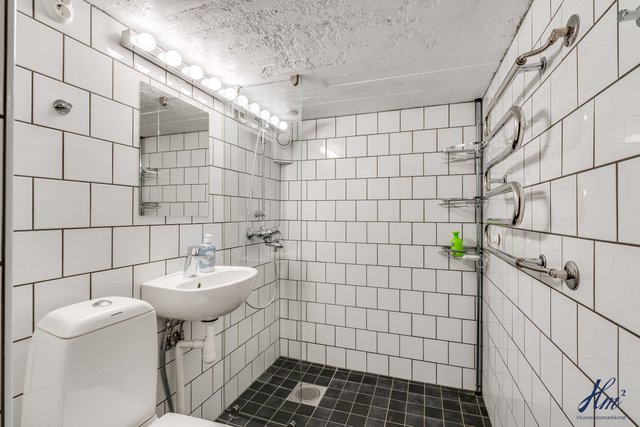 - WC-istuin, suihku, suihkuseinä, bidee-suihku, pyyhekuivaaja, pesuallas, peili, ja lattialämmitys