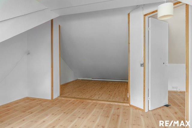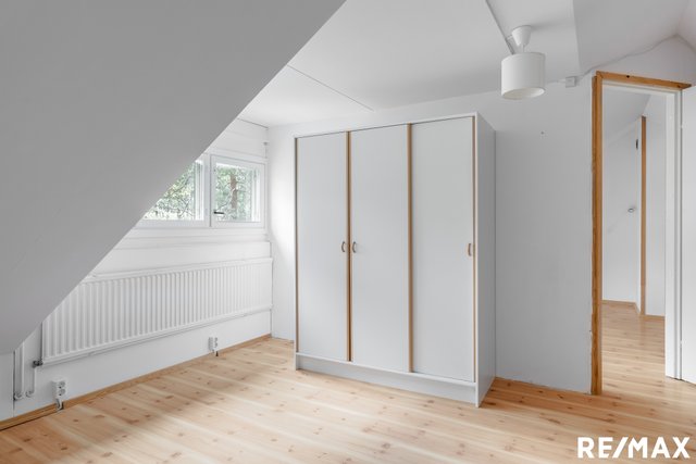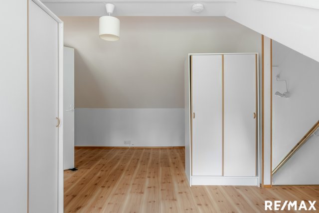 Yläkerta on alun perin ollut yhtä isoa tilaa, mutta tilaan on aikoinaan rakennettu väliseinä ja sieltä löytyykin nyt kaksi reilunkokoista huonetta.