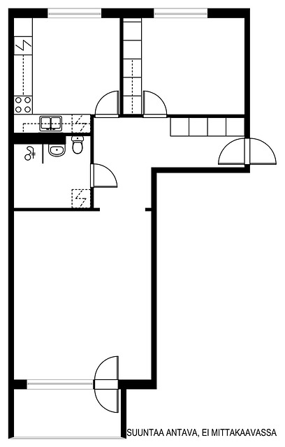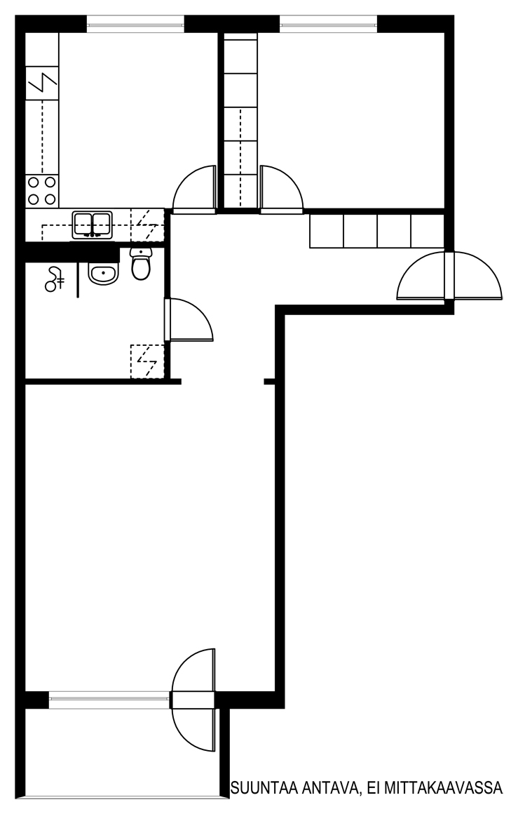- Olohuoneesta käynti lasitetulle parvekkeelle etelään.