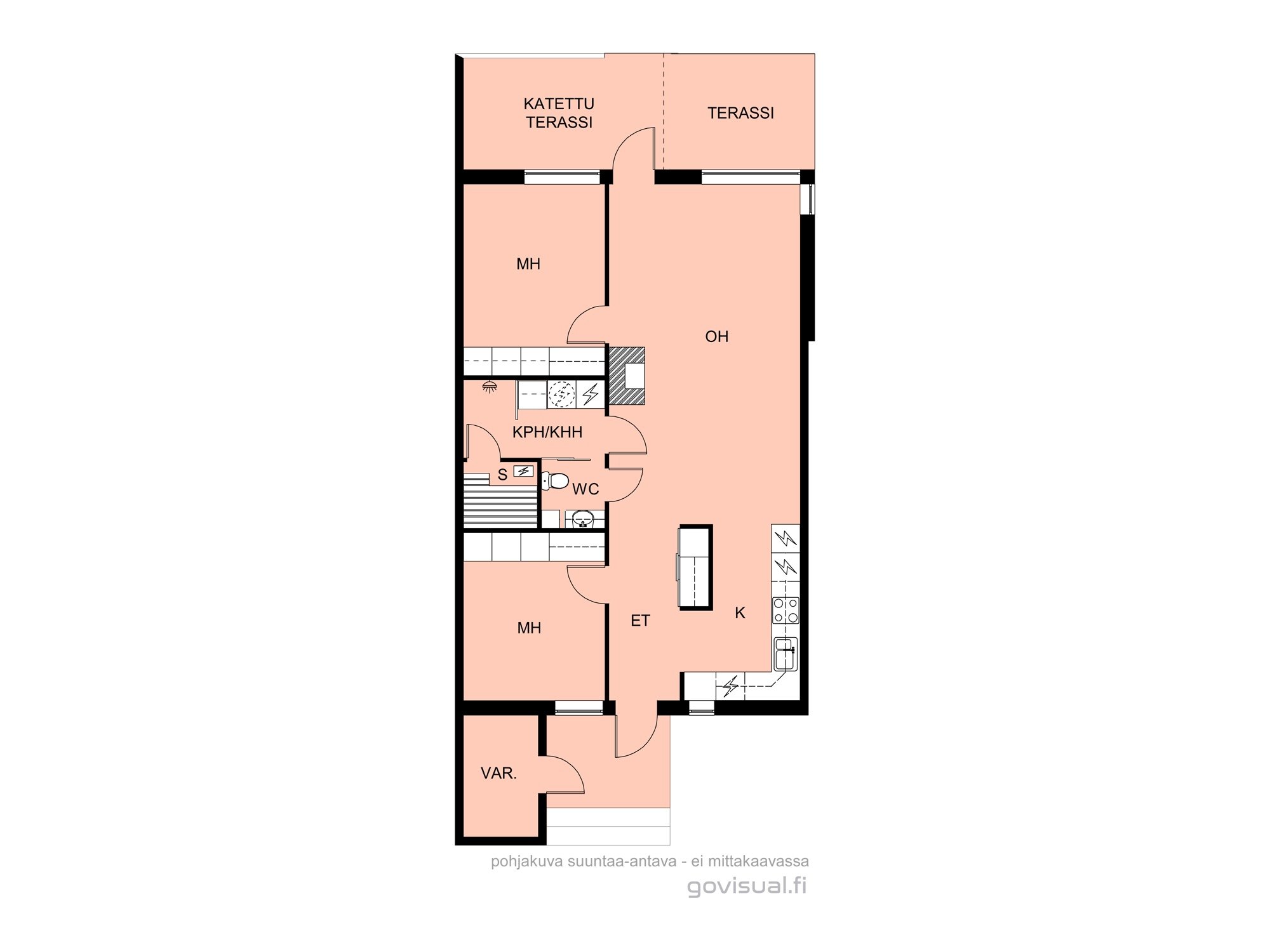 - Sälekaihtimet, ilmalämpöpumppu 2013 (taloyhtiön vastuulla), varaava takka, Elfa korit