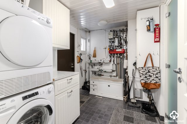 - Pesukone, kuivausrumpu, pesukoneliitäntä, lattialämmitys, ja lattiakaivo