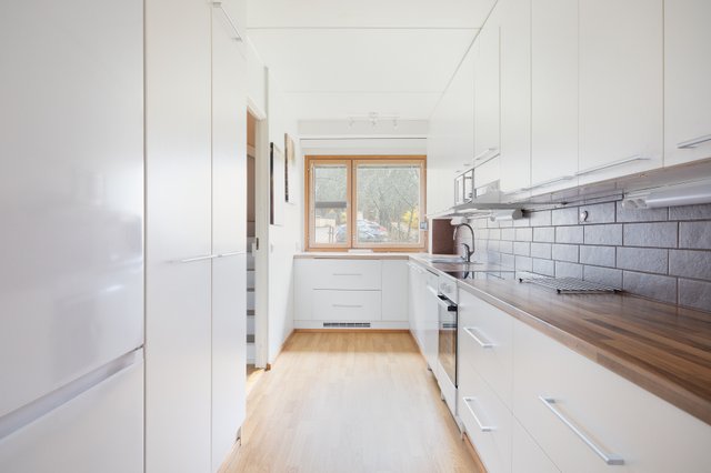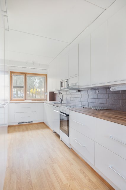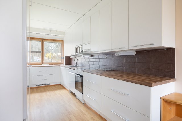 - Keittiö on remontoitu vuonna 2010 ja lisäksi keittiön kodinkoneet on vaihdettu uusiin vuonna 2021. Varusteet: astianpesukone, jääkaappi/pakastin, induktioliesi, kiertoilmauuni, liesituuletin, laminaattitaso. Lattia: laminaatti.