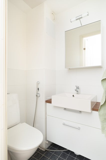 - Erillis-WC on remontoitu vuonna 2012. Varusteet: sähköinen lattialämmitys, wc-istuin, bidee-suihku, allaskaappi, peilikaappi.