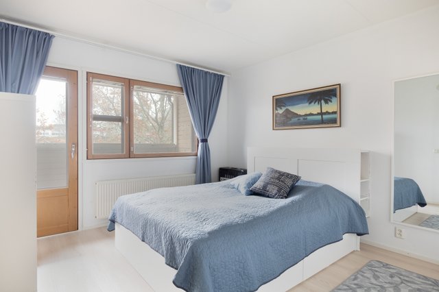 - Makuuhuoneissa on maalatut seinät sekä laminaattilattiat vuodelta 2021. Kahdessa makuuhuoneessa on kiinteä kaapisto.
