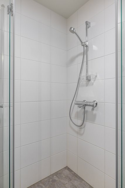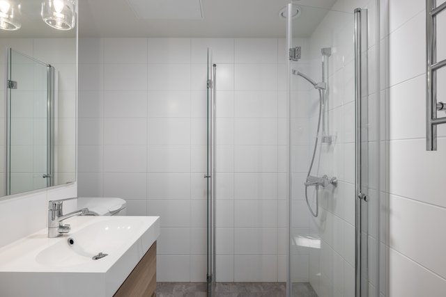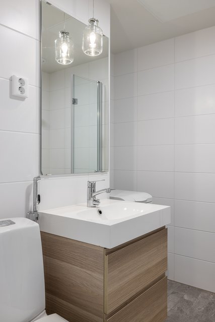 - Kylpyhuoneen varustukseen kuuluu allaskaappi, peili, suihku, lasiset suihkuseinät, wc-istuin, bidee-suihku, pyykinpesukoneliitäntä ja pyyhekuivain. Lattia on laattaa, seinät kaakelia ja katto paneloitu. Lattialämmitys (sähkö). Kylpyhuone on uusittu (putkiremontin yhteydessä) vuonna 2022.