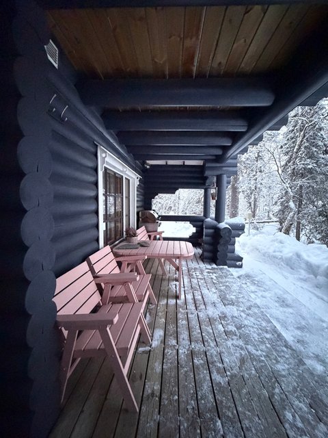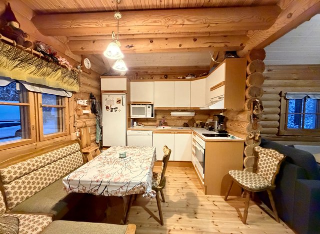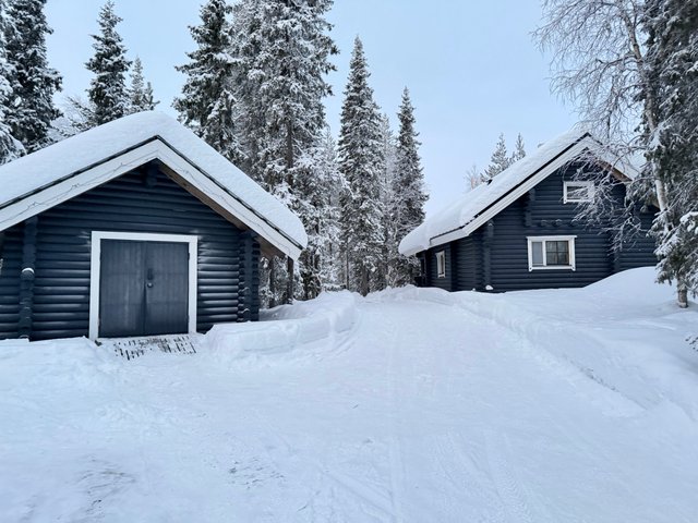The cottage has a spacious loft with sleeping accommodations. The balcony and terrace invite you to enjoy the surrounding nature and the fresh Lapland air. Outbuildings, such as a heated storage room and a sled storage room, offer plenty of storage space.
