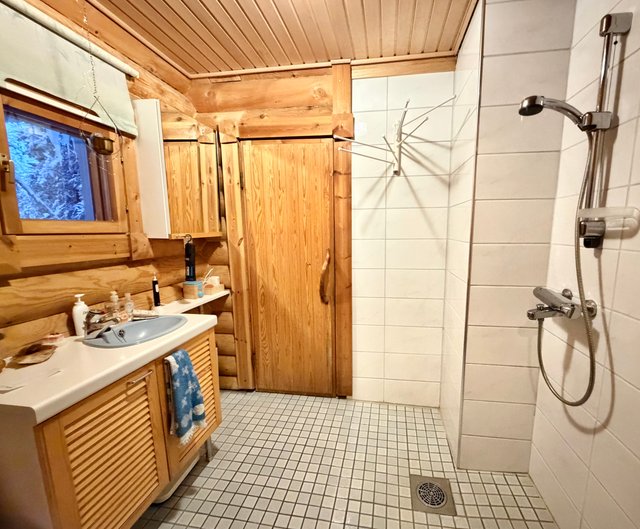 The cottage's roof was renovated in 2018, and two new log floors were added at the same time. The bathroom wall tiles were also replaced in the same year, and the cottage has been painted, so it is in good condition and ready to welcome its new owners. The cottage is connected to the municipal water supply, but there is also a separate borehole in the yard. The property includes an official boat mooring right on Lake Ylläsjärvi. The purchase price also includes the adjacent plot (261-402-25-29), measuring 1240m2, which has no buildings on it.