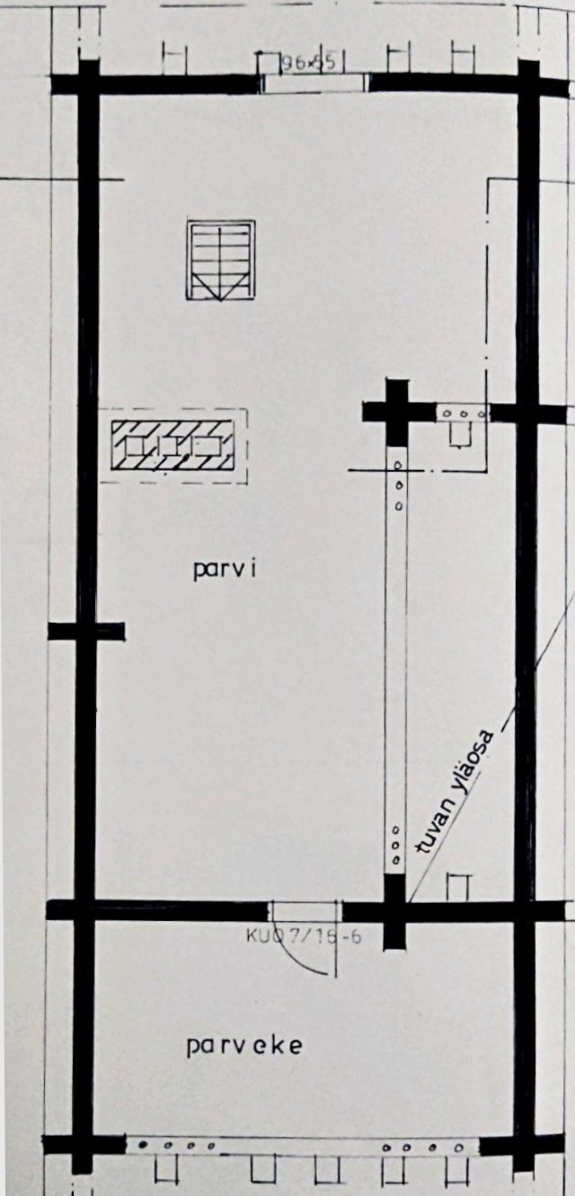 - Parvi 18m2 lattiapinta-ala, kävelykorkeus keskellä.