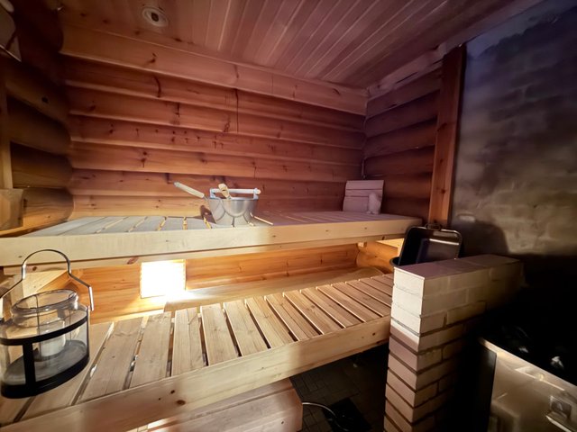 The living room has a cozy fireplace that creates warmth and coziness on winter evenings. The kitchen is equipped with modern conveniences such as a dishwasher and microwave, and there is also a Tulikivi baking oven. The sauna offers the perfect moment of relaxation with a wood-burning stove, and the bathroom was renovated in 2018.