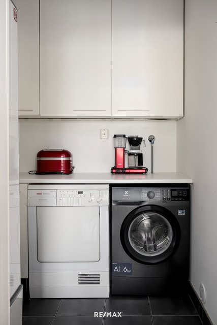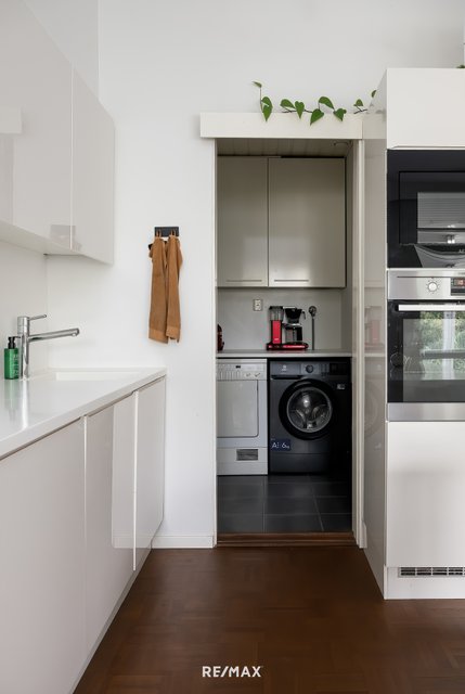 - Pesukoneliitäntä, pyykkikaapit, ja pöytätaso
