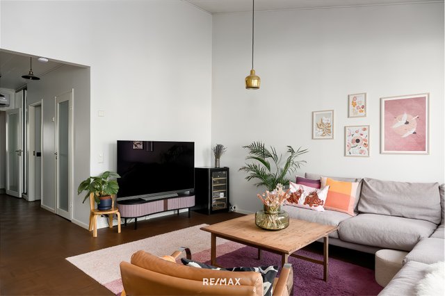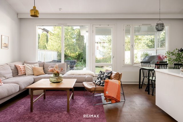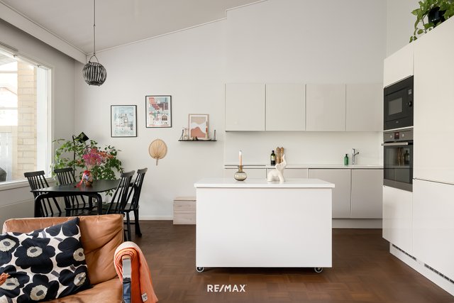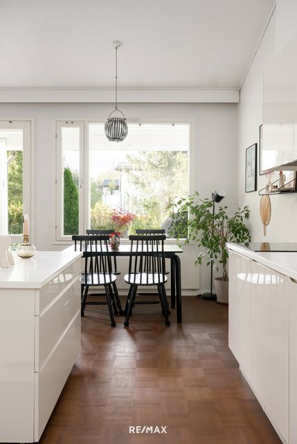 Tämä tyylikkäästi toteutettu koti vapautuu nyt seuraavalle omistajalleen. Tämän asunnon sydän on nykyaikainen avokeittiö, joka yhdistyy olohuoneeseen luoden avonaisen kokonaisuuden. Olohuoneen isot ikkunat tuovat valon kivasti asuntoon. Keittiön vieressä on kodinhoitohuone, joka helpottaa perheen arjessa. Kylpyhuone on remontoitu tyylikkäästi ja kylpyamme sisältyy kauppaan halutessa mukaan. Pienemmässä makuuhuoneessa on kahdella seinällä isot liukuovikaapistot. Lännen suuntaan olevalla, suojaisalla pihalla on mukava nauttia kesäilloista auringonpaisteessa. Asunnolle kuuluu sisäänkäynnin vieressä oleva ulkovarasto ja autopaikka, jossa on sähköauton latausasema valmiina.