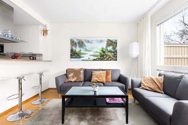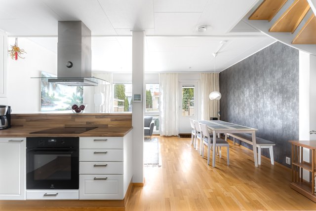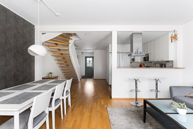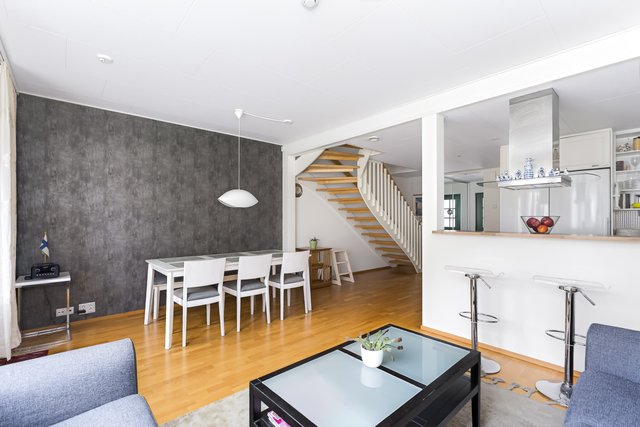 ASUNTO on siistissä kunnossa ja täysin muuttovalmis. Pohjaratkaisu on erittäin toimiva ja viihtyisä. Alakerrassa sijaitsee avara olohuone, josta on suora kulku omalle terassille ja pihalle. Keittiö on luontevasti olohuoneen yhteydessä, mikä tekee arjesta ja kesäisistä grillihetkistä erityisen sujuvia. Puuterassilla vietät lämpimiä kesäpäiviä ystävien ja perheen kanssa grilliherkkujen ja juomien äärellä. Alakerrassa on lisäksi yksi huone, erillinen wc, sisääntulon yhteydessä oleva lasiveranta sekä varastotila.