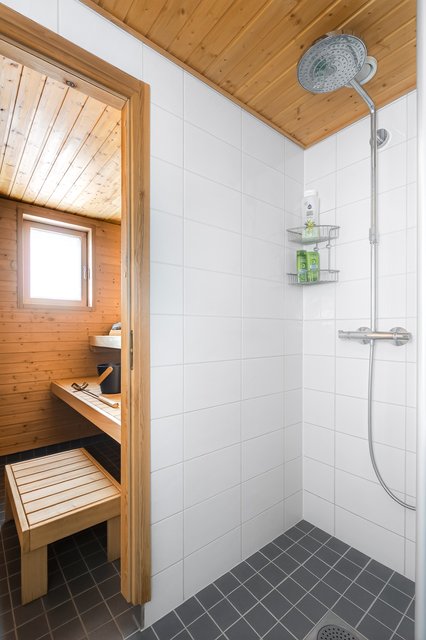 - Suihku, suihkuseinä, ja lattialämmitys