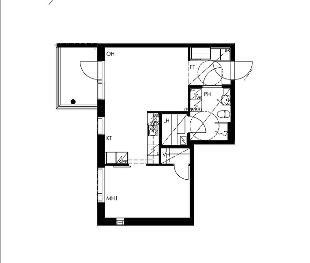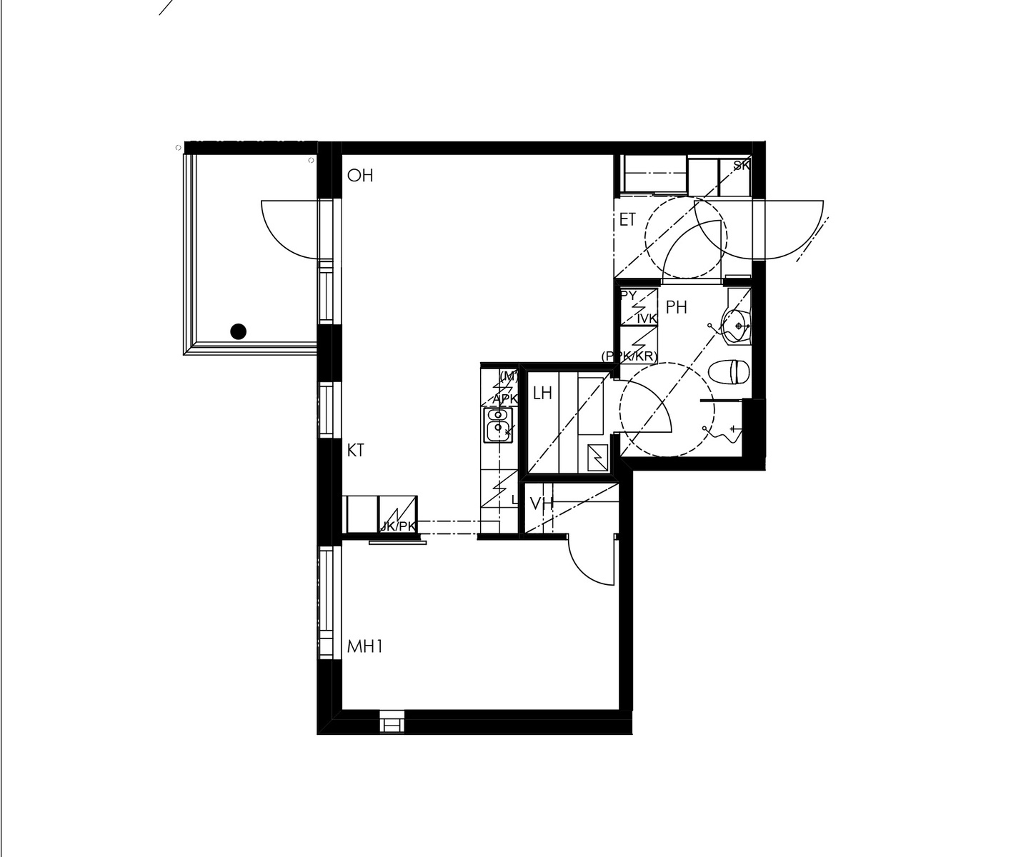 - Suihku, lattialämmitys, peilikaappi, pesukoneliitäntä, ja suihkuseinä