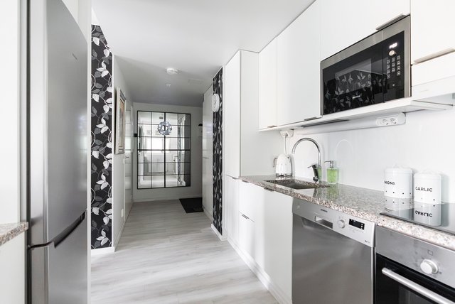 - Jääkaappipakastin, erillisuuni, astianpesukone, ja mikroaaltouuni