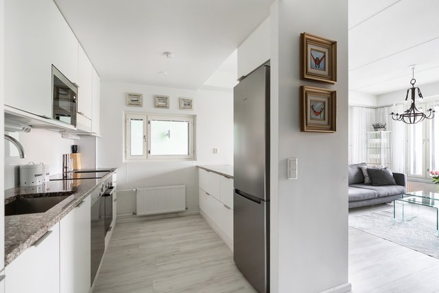 Asunto on erittäin hyvässä kunnossa mm. lattia ja pinnat on päivitetty vuonna 2021. Vaaleat sävyt ja ajattomat materiaalit luovat tyylikkään kokonaisuuden. Keittiön kivitasot tuovat käytännöllisyyttä ja ripauksen ylellisyyttä arkeen.