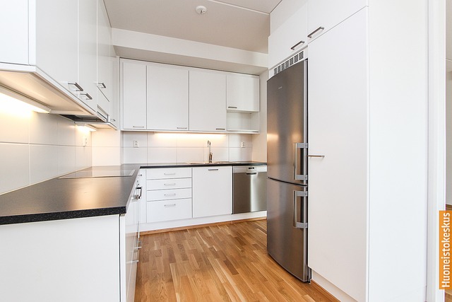 "Kuvat kohteesta, ovat suuntaa-antavia. Kuvat ovat vastaavanlaisesta asunnosta, eivätkä kodinkoneet tai laattojen, kaapistojen värimaailma välttämättä ole sama kuin nyt esillä olevissa kuvissa."