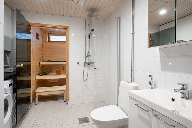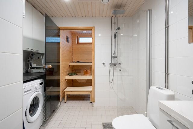 - Suihkuseinä, lattialämmitys, suihku, pesukoneliitäntä, wc-istuin, peilikaappi, ja allaskaappi