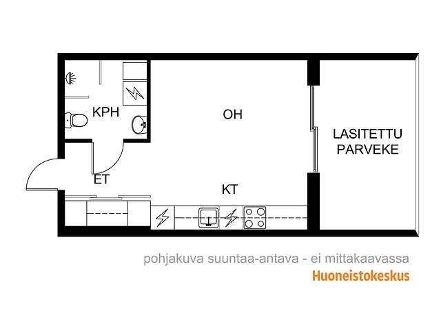- Erillisuuni, jääkaappipakastin, liesituuletin, astianpesukone, ja liesitaso, kiinteät valaisimet