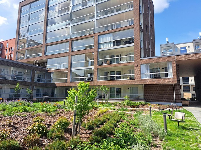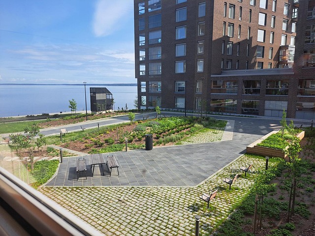 - Sisäpihalle ja parvekkeelta näkymä osittain järvelle