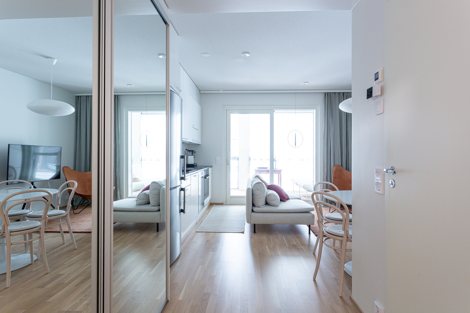 Kaunis kaksio vuonna 2022 valmistuneesta Asunto Oy Tampereen Fenderistä.