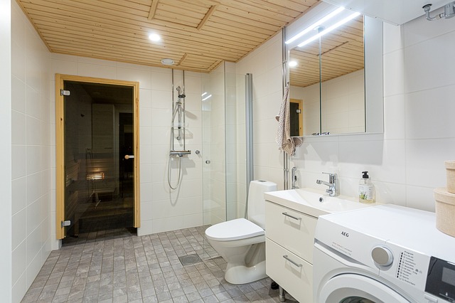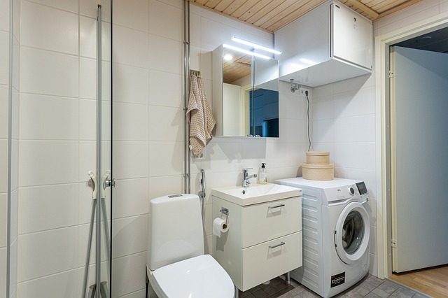 - Suihku, wc-istuin, peilikaappi, pesukoneliitäntä, suihkuseinä, allaskaappi, ja kiinteät valaisimet