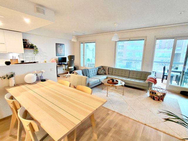 Asunnon avara pohjaratkaisu takaa toimivan sekä viihtyisän kokonaisuuden. Asunnossa on lattialämmitys viilennysominaisuudella, mikä luo mukavan sisäilmalämpötilan ympäri vuoden. Oman saunan löylyt tarjoavat rentouttavia hetkiä arjen keskellä.