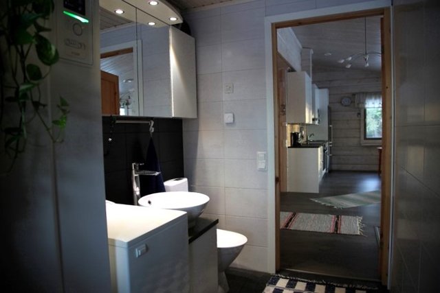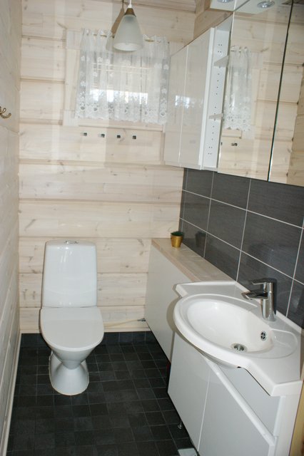 - Pesukoneliitäntä, lattialämmitys, wc-istuin, suihku, peilikaappi, pesuallas, bidee-suihku, ja allaskaappi