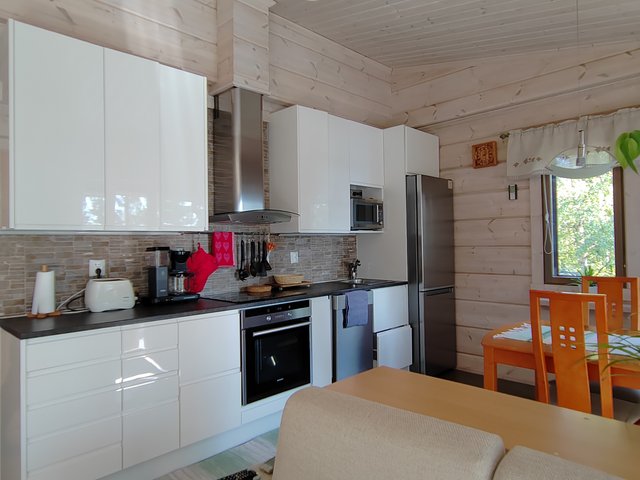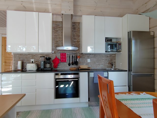 - Jääkaappipakastin, erillisuuni, liesituuletin, astianpesukone, ja liesi