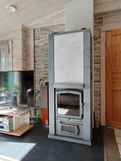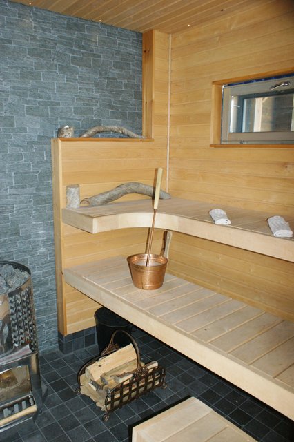 - Narvin puulämmitteinen kiuas. kuituvalot katossa, seinissä puupaneeli ja verhoilukiveä.