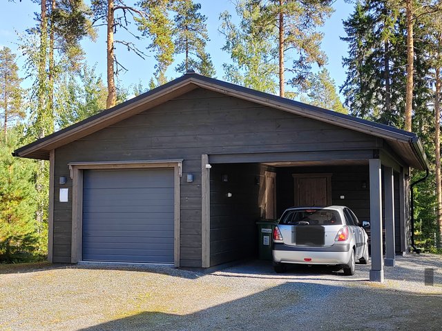 - Autotallirakennus 35 m2 (kauko-ohjattavalla nosto-ovella) missä myös lämmin varasto 12,5m2 ja autokatos. Valmistunut 2015. Puuliiteri ja vaja.