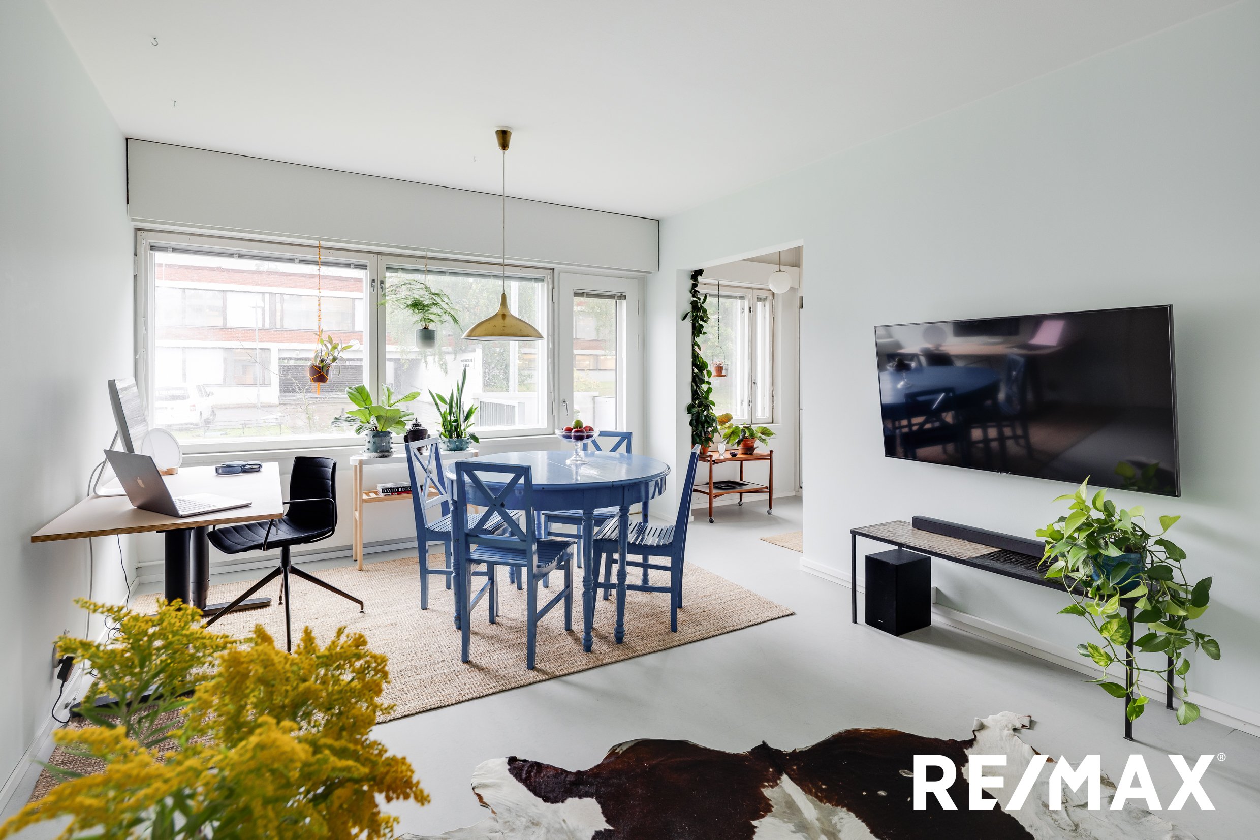 Tämä koti yhdistää luonnonläheisen ympäristön, hyvin hoidetun taloyhtiön maalämmöllä ja käytännölliset asumisratkaisut. Tervetuloa tutustumaan tähän kotiin vehreässä ja merellisessä Puotilassa – sovi oma esittelyaikasi jo tänään!Pohjakuva