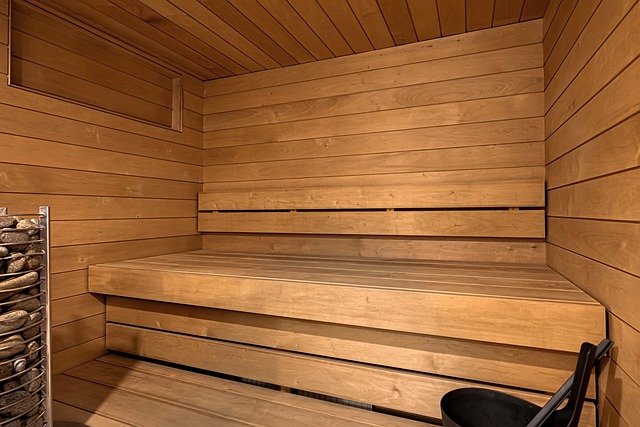 - Lämpökäsiteltyä terveleppää ja lauteisiin upotettu kivikiuas.