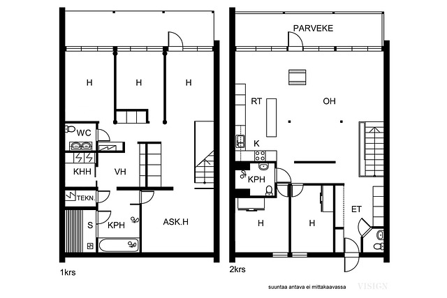- Yhtiöjärjestyksen mukaan huoneiston 214 m² huoneistoalasta 107 m² on asuintiloiksi luokiteltuja tiloja sekä 107 m² on kellaritilaksi määriteltyjä tiloja. Huoneiston asuintilojen pinta-aloina on markkinoinnissa käytetty 214 m², sillä tilat ovat asuinkäytössä olevia ja niihin kuljetaan sisäkautta. Yhtiöjärjestyksen mukainen huoneiden määrä eriteltynä: 6h+et+avok+2wc+kph wc+khh+s+ph+harrastetila. Pinta-ala saattaa tämän ikäisessä kohteessa poiketa olennaisesti nykyisten standardien mukaan laskettavasta asuinpinta-alasta. Todellinen asuinpinta-ala voi olla yhtiöjärjestyksessä, isännöitsijäntodistuksessa ja esitteessä mainittua pienempi tai suurempi