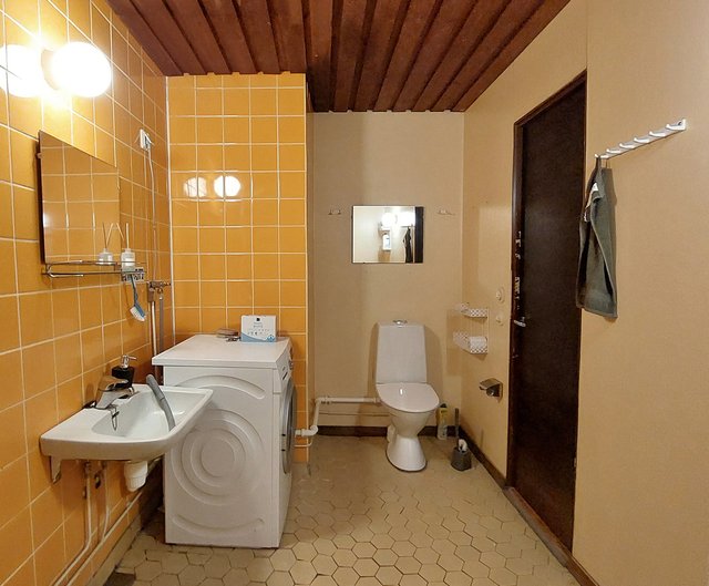 - Suihku, pesukoneliitäntä, ja wc-istuin