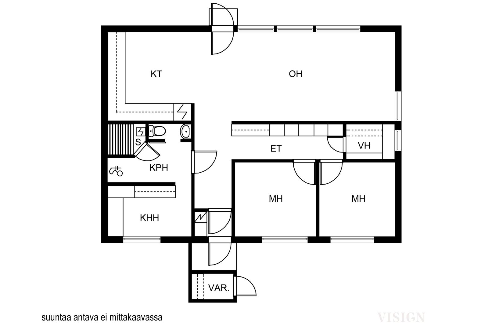 - Huoneistossa on sauna. Saunaosastoa on muokattu ja lisätty kodinhoitohuone. Keittiön on vaihtanut paikkaa olohuoneen jatkeeksi.