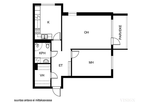 2 h, k, vh, kph, lasitettu parveke (Yj. 2 h+k)