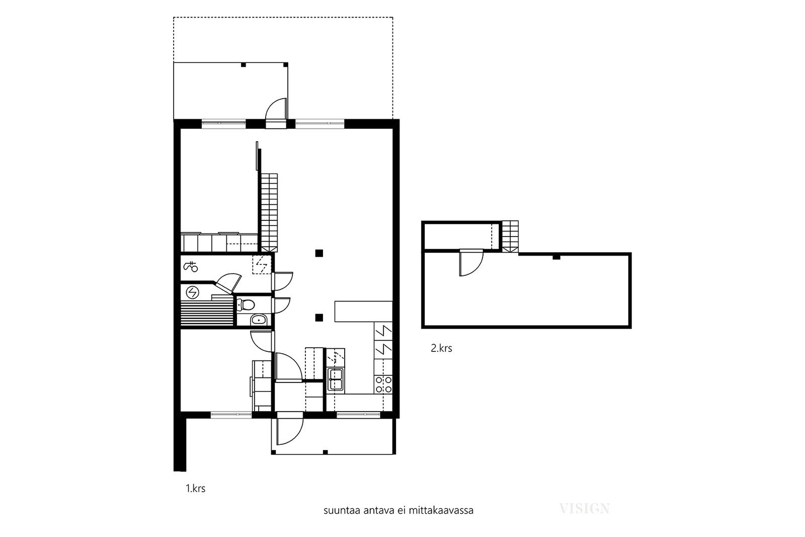 - Pinta-alaa ei ole tarkistusmitattu. Edellä mainittu pinta-ala saattaa tämän ikäisessä kohteessa poiketa olennaisestikin huoneiston nykyisten mittaustapojen ja standardien mukaan laskettavasta pinta-alasta. Huoneiston todellinen asuinpinta-ala voi siis olla yhtiöjärjestyksessä, isännöitsijäntodistuksessa ja esitteessä mainittua pienempi tai suurempi. Asuinpinta-alaan laskematonta tilaa on vaatehuone 2,6m2, parven takaosa n.3m2
