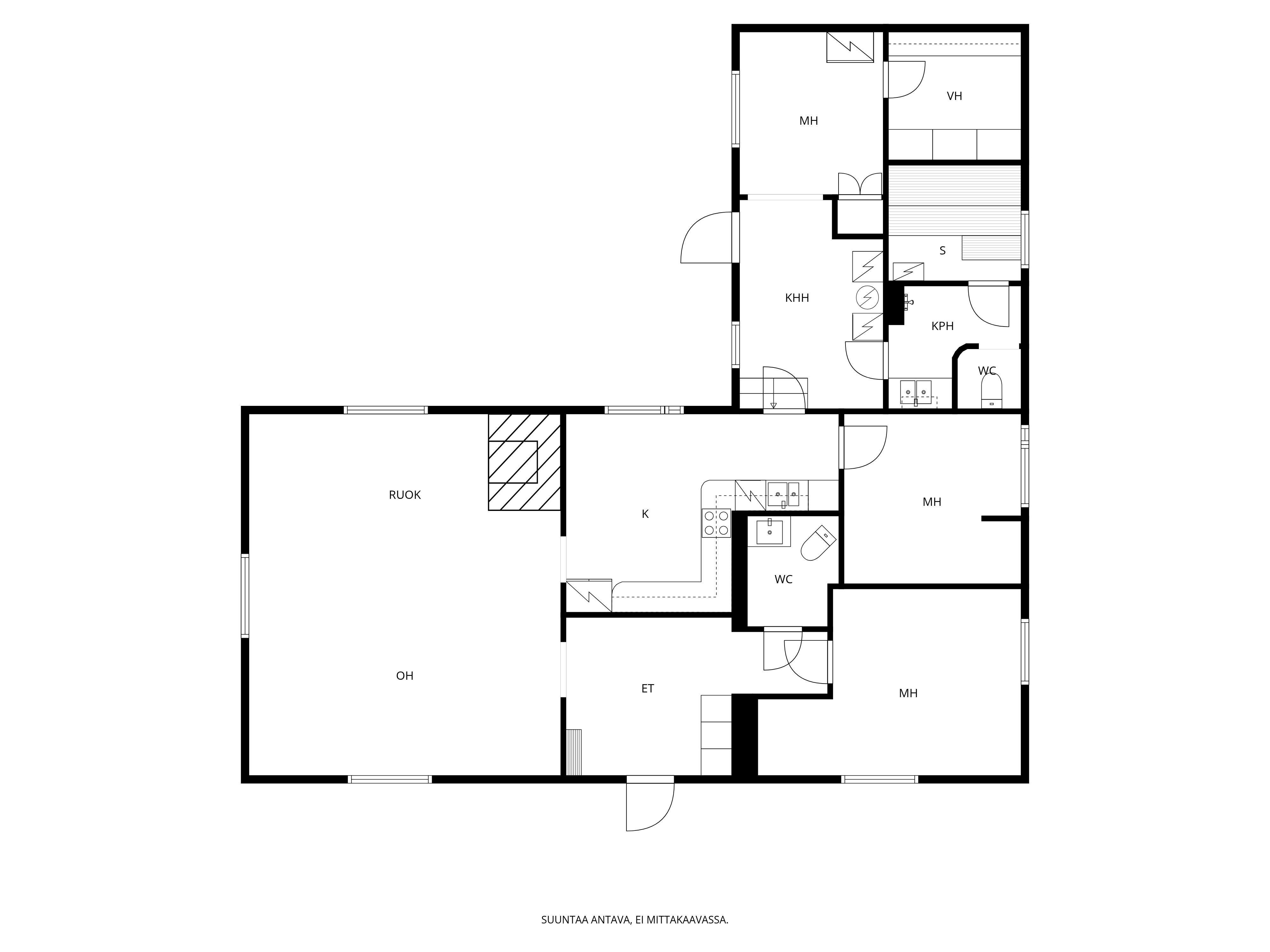Tupa, k, 3mh, vh, s, kph, khh, 2wc, eteinen.