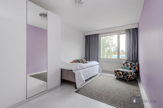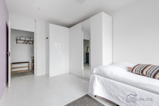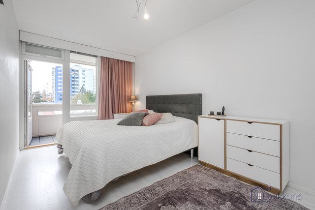 - Makuuhuoneet ovat kaikki kolme etelään päin. Kaksi makuuhuoneista ovat jokseenkin saman kokoisia ja soveltuvat suuren kokonsa puolesta niin päämakuuhuoneiksi kuin vaikka kahdenkin lapsen huoneiksi. Toisessa näistä on käynti parvekkeelle. Molemmissa huoneissa on uusittu tyylikkäät kaapistot. Huoneiden keskellä oleva, kolmas makuuhuone, on pienin ja soveltuu erinomaisesti lasten-, työ- tai vierashuone käyttöön.