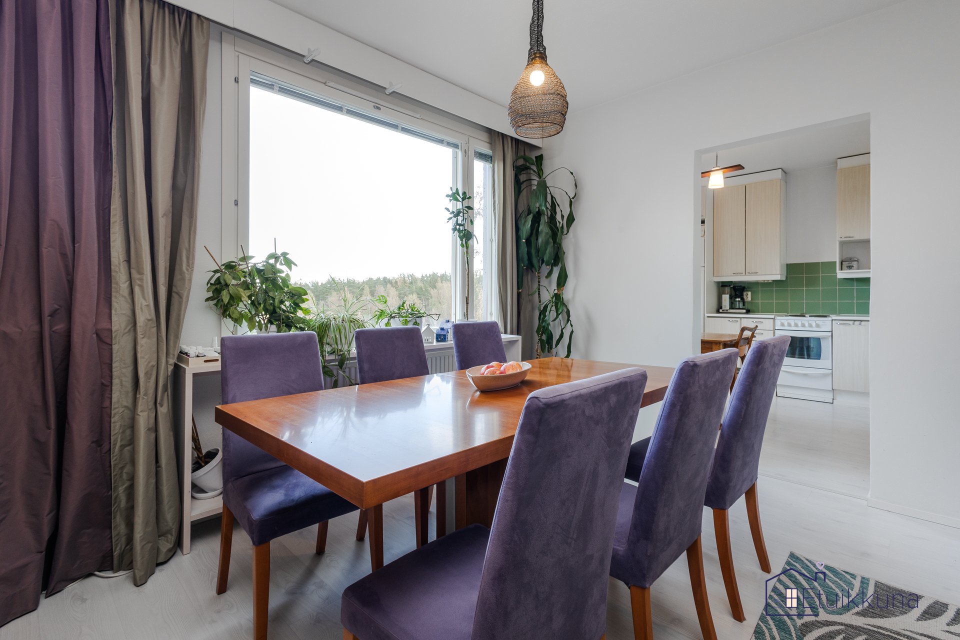 Koivukylän rauhallisella alueella, Vantaalla, odottaa uusi koti perhettä, joka arvostaa tilaa ja upeita näkymiä. Tämä 91,5 m² asunto sijaitsee viidennessä kerroksessa, josta avautuvat upeat näkymät Vantaan ylle. Asunnossa on kolme makuuhuonetta, jotka sopivat erinomaisesti perheen erilaisiin tarpeisiin. Olohuoneen suuret ikkunat tuovat runsaasti luonnonvaloa sisään, joten tätä läpitalon olevaa kotia voi hyvin kutsua valoisaksi.
