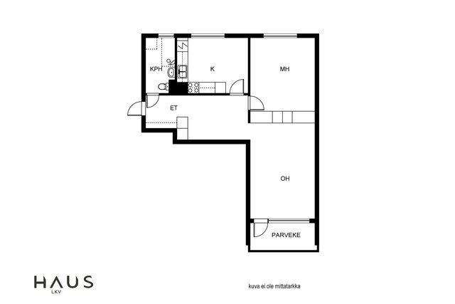 - Ei tarkistusmitattu. Pinta-alat saattavat tämän ikäisissä kohteissa (yhtiö rekisteröity ennen 01.01.1992) poiketa olennaisestikin asuinrakennusten nykyisten mittaustapojen ja standardien (SFS 5139) mukaan laskettavasta asuintilojen pinta-alasta. Pinta-ala voi siis olla edellä mainittua pienempi tai suurempi.