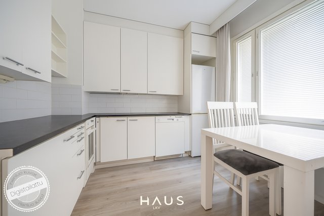 - Jääkaappipakastin, astianpesukone, uuni, liesi, ja liesituuletin